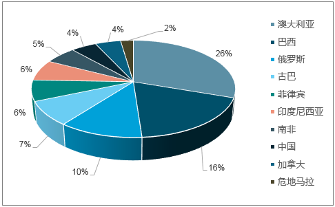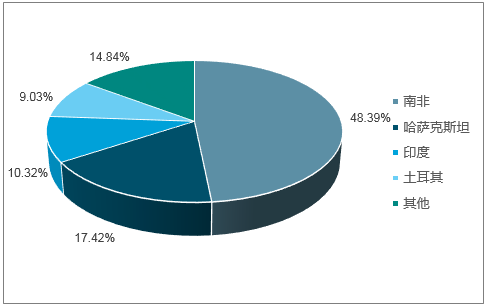 2017年全球鉻礦產量約為31,000.00千公噸,同比增長2.65%。其中,南非是世界上最大的鉻礦生產國,2017年鉻礦產量占全球的48.39%,哈薩克斯坦、印度、土耳其分別比17.42%,10.32%和9.03%。2017年南非鉻礦產量為15,000.00萬噸,同比增長2.04%。
