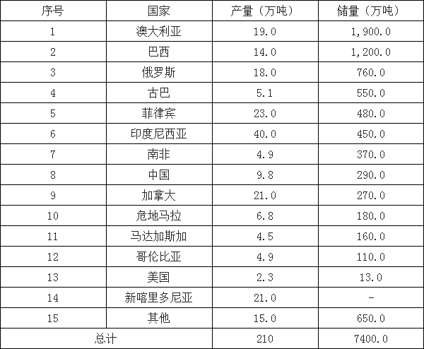 世界鉻鐵礦儲量和儲量基礎(商品級礦石)