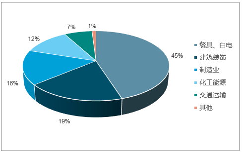 餐具、白電領域不銹鋼消費占比約45%,建筑裝飾19%、制造業16%、化工能源12%、交通運輸約7%。