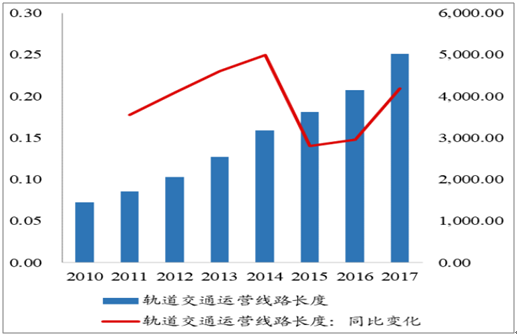 根據2016年國家發改委發布的《中長期鐵路網規劃》,我國計劃在2025年,鐵路里程數達到17.5萬公里,以最新公布的2016年鐵路里程數計算,10年內的總里程將增加5.1萬公里。同時,《中長期鐵路網規劃》還指出,到2025年,高鐵里程數將達到3.8萬公里,新增高鐵1.6萬公里。可見國家將大力發展鐵路交通,并以“八縱八橫”為框架修建高鐵,連接主要城市群,基本連接省會城市和其他50萬人口以上的大中城市,將形成以特大型城市為中心覆蓋全國、省會城市為支點覆蓋周邊的高速鐵路網。